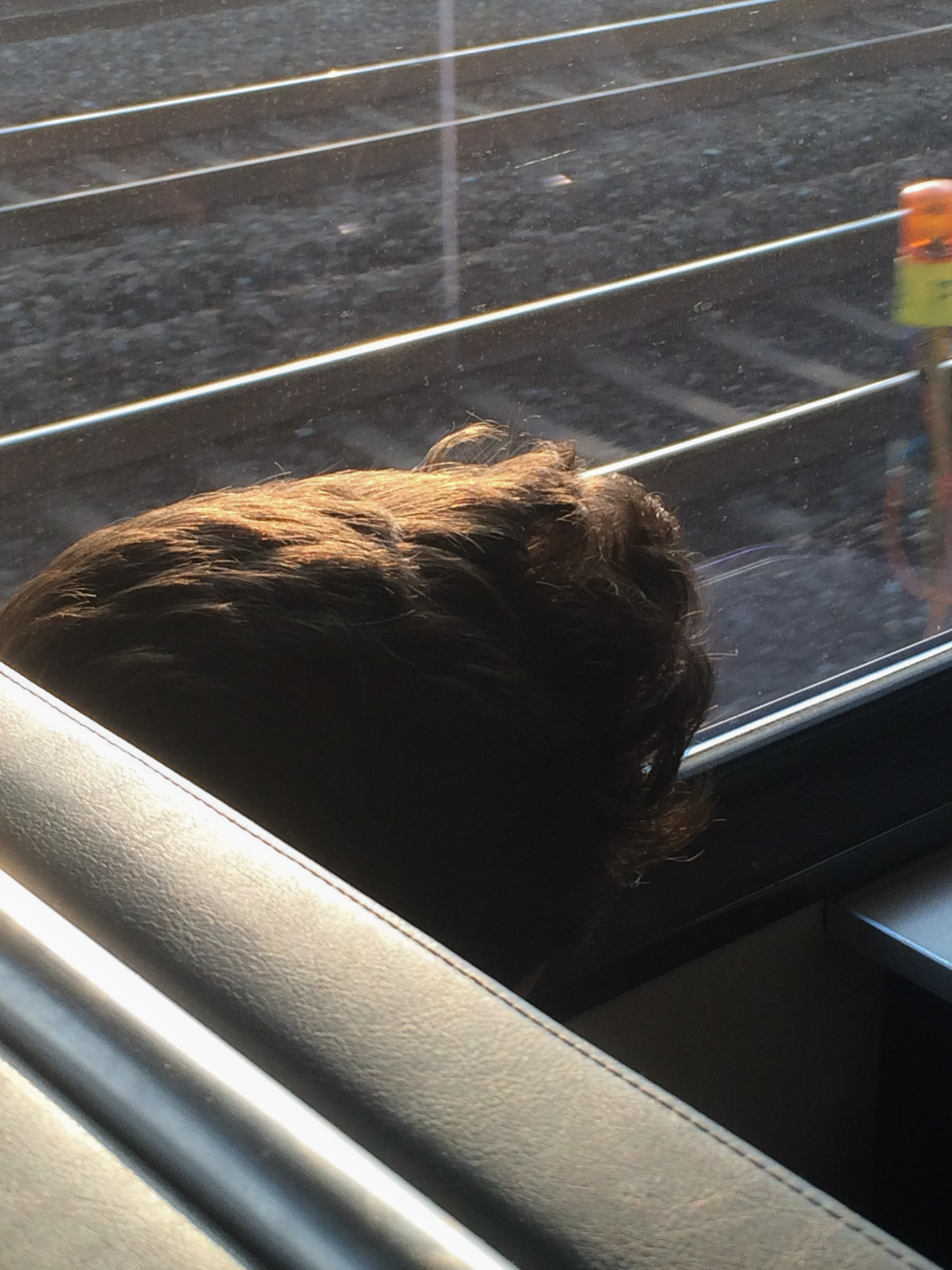Photo volée dans le train. Prise avec mon iPhone, retouche luminosité dans CaméraRaw… et voilà le travail. Bientôt d’autres versions de cette même photo avec différents filtres, pour explorer leurs possibilités, regarder un peu ce qu’il est possible de faire, en sachant que souvent ce sont des accidents, des expérimentations qui n’englobent pas l’entier du possible, mais qui ont la qualité d’exister au moins et de marquer un certain cheminement dans la curiosité de la découverte.